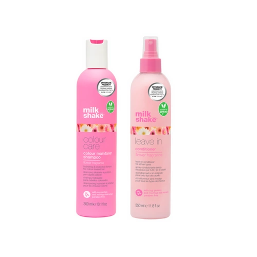 Milk Shake Zestaw Colour Care Flower Power Vegans Szampon nawilżający do włosów farbowanych 300ml + Milk Shake Flower Power Vegans | Odżywka do włosów bez spłukiwania 350 ml
