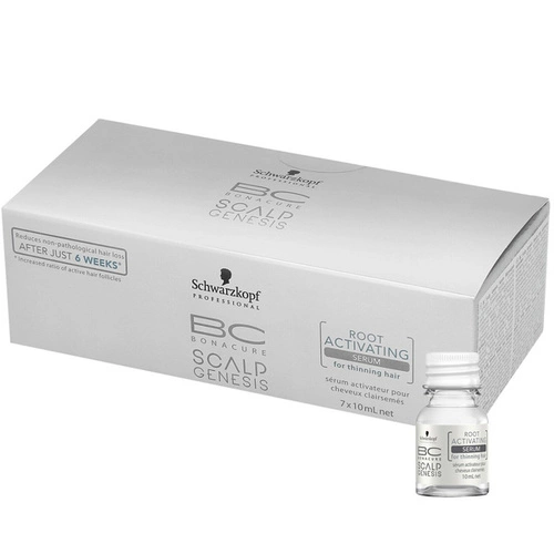 Twoje włosy zaczęły się przerzedzać i wypadać? Sięgnij koniecznie po serum aktywujące Schwarzkopf BC Scalp Genesis, który odpowiada na potrzeby włosów słabych i rzadkich. Kosmetyk ten działa na bazie winianu keratyny, który wspomaga szybki podział komórek, pobudza ich produkcji oraz zwiększa witalność włosów. Kosmetyk ten świetni pobudza cebulki włosowe i redukuje niepatologiczne wypadanie już po 6 tygodniach regularnego stosowania. Produkt ten to ratunek w przypadku wypadania włosów spowodowanym przejściowymi problemami zdrowotnymi lub agresywnymi zabiegami fryzjerskimi.