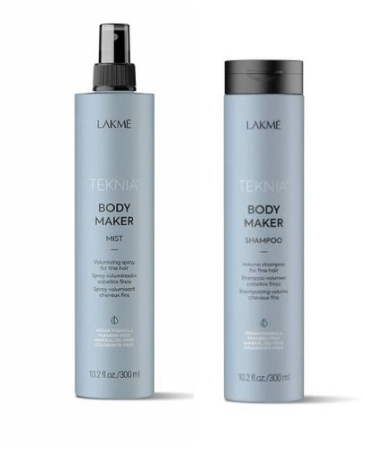 Zestaw Lakme Teknia Body Maker został stworzony z myślą o wielowymiarowej pielęgnacji cienkich i delikatnych włosów, które potrzebują objętości i wzmocnienia. Szampon dokładnie oczyszcza skórę głowy i włosy, jednocześnie je unosząc, podczas gdy mgiełka dodatkowo podkreśla efekt uniesienia, nadając włosom lekkość i sprężystość.